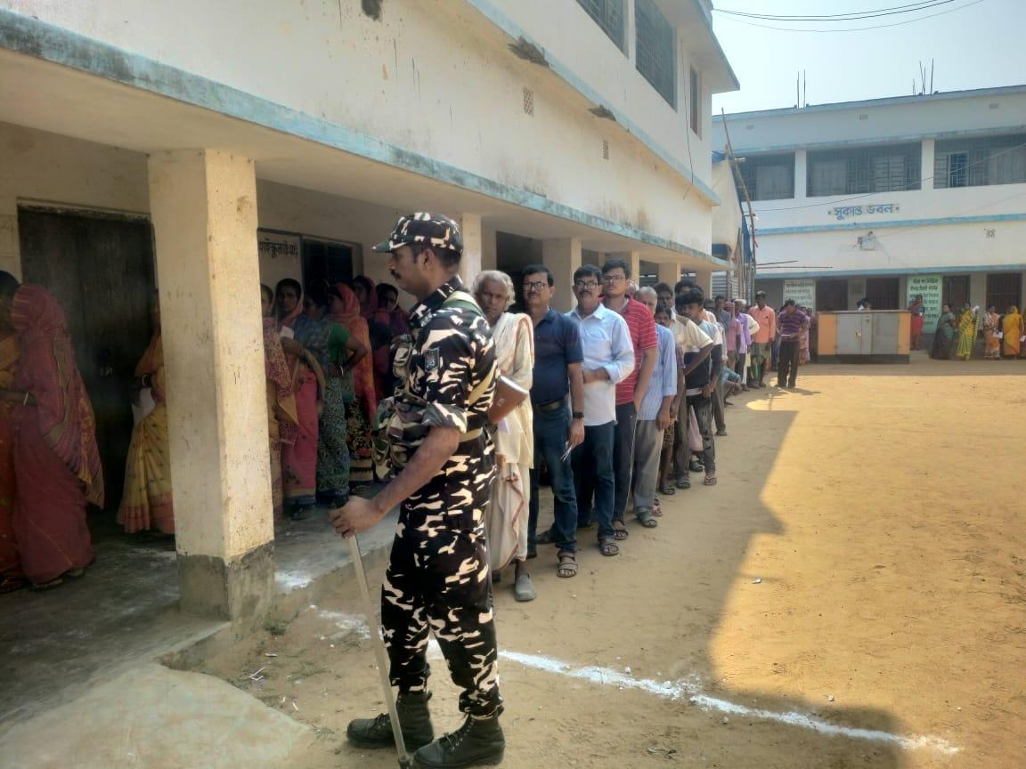 Meanwhile, a group of people raised slogans against BJP candidate and former Calcutta High Court judge Abhijit Gangopadhyay when he reached the polling booth in Tamluk.