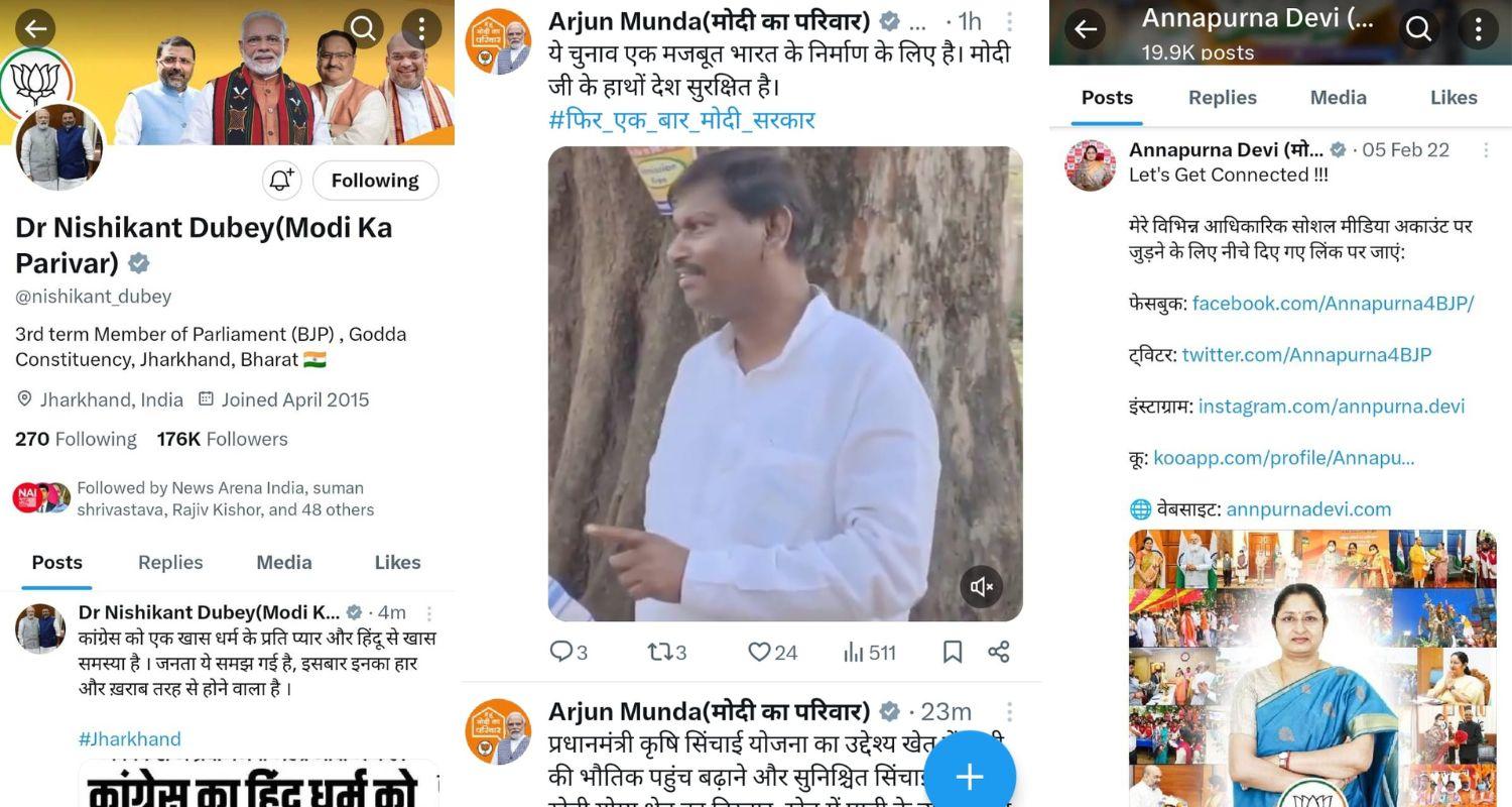 Among the prominent candidates of the State, there are several leaders, who have a very strong media follower base. Among the top three leaders in the list, Union Minister Arjun Munda, MP Dr Nishikant Dubey and MoS for Education Annapurna Devi have lakhs of followers.