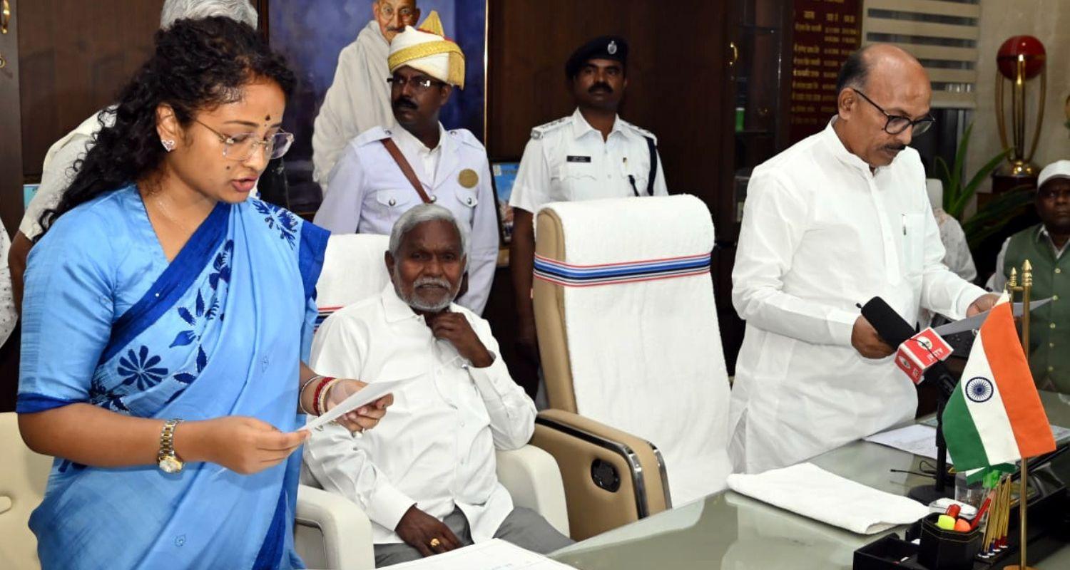 Jharkhand Mukti Morcha legislator Kalpna Murmu Soren today took oath as a member of Jharkhand Legislative Assembly. The wife of former Chief Minister Hemant Soren, Kalpana has recently won the Gandey Assembly bye-election on JMM ticket.