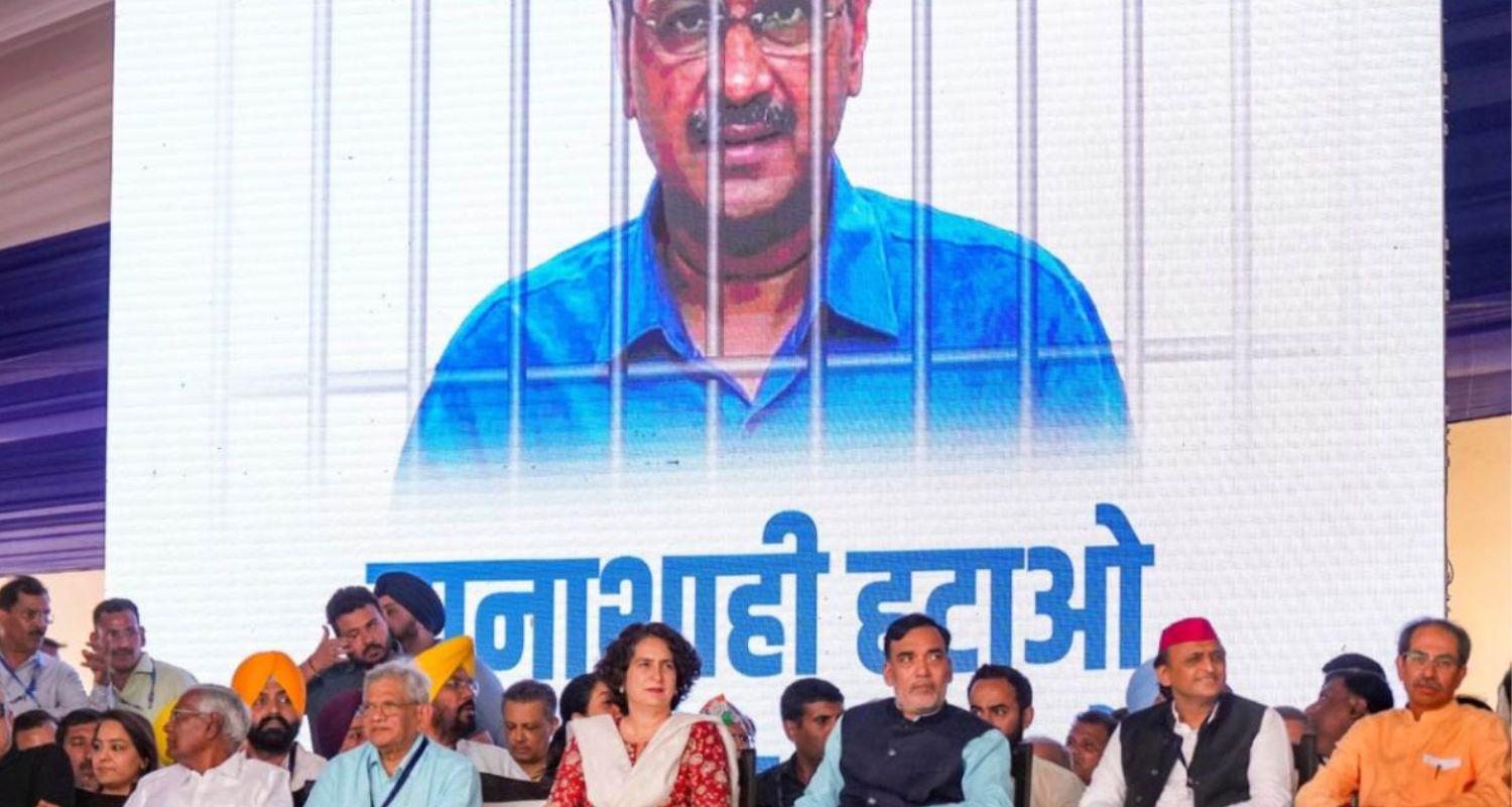 In a show of opposition unity ahead of the Lok Sabha polls, INDIA bloc leaders came together at a ‘Loktantra Bachao’ rally at the Ramlila ground here on Sunday in the backdrop of Delhi Chief Minister Arvind Kejriwal’s arrest.