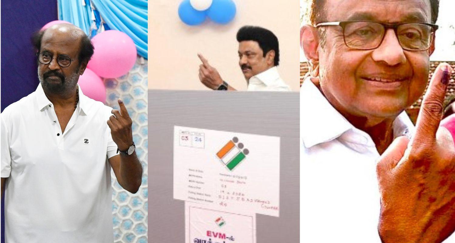 As Tamil Nadu gears up for elections in all 39 constituencies in the Lok Sabha polls 2024. Some top personalities stepped up to vote in their respective constituencies. MK Stalin, Actor Rajnikanth, Congress leader P Chidambaram were among the first to cast their ballot.