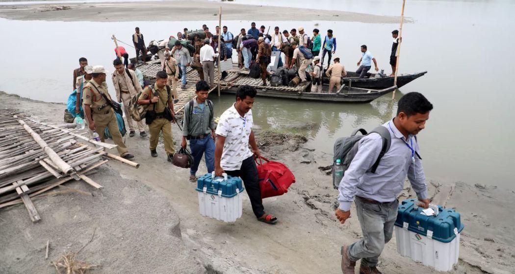 An SUV carrying an electronic voting machine partially sank into a river after water level rose suddenly washing away a mechanised boat that was ferrying the vehicle in Assam’s Lakhimpur constituency on Friday, officials said.