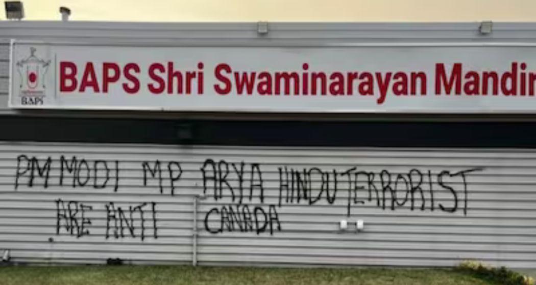 The BAPS Swaminarayan Mandir in Edmonton, Canada, has been vandalised with BAPS Swaminarayan Mandir, sparking outrage amid growing concerns about Hinduphobia in the country.