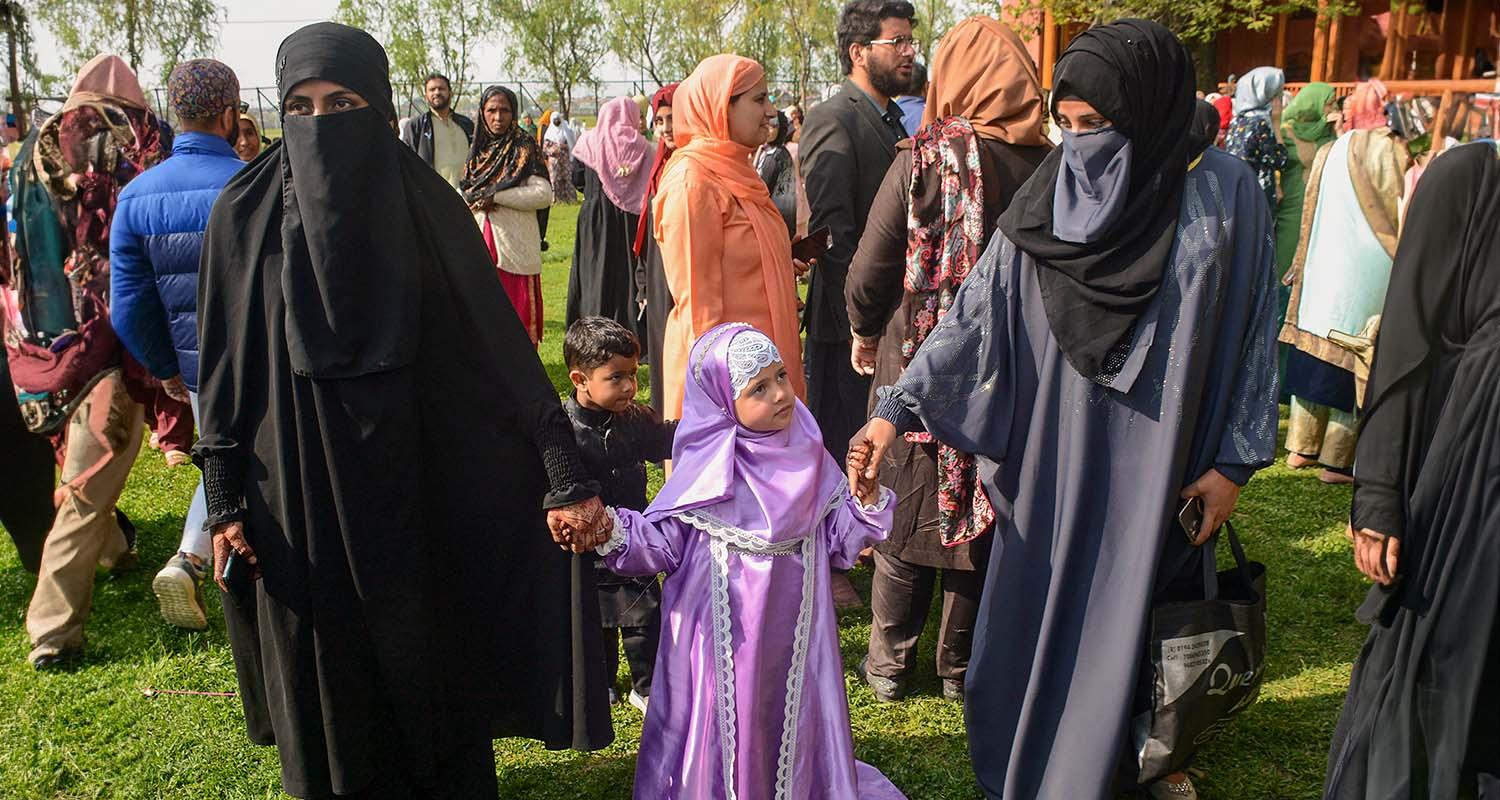 Muslims celebrate Eid-al-Fitr, at the historic Aali Masjid Eidgah, in Srinagar