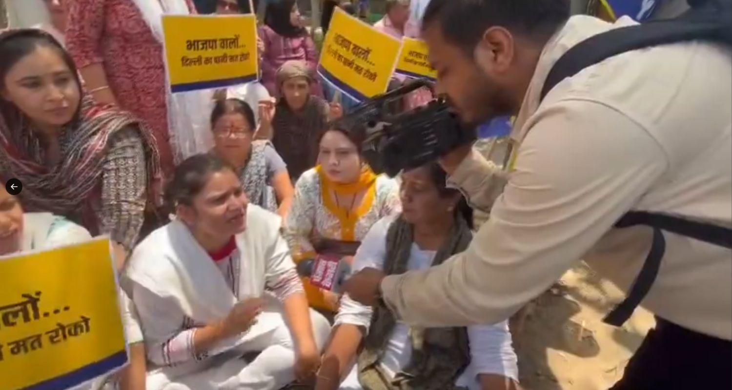 AAP held a protest on Monday at Haryana Bhawan over its allegation that the neighbouring state is not releasing Delhi's share of Yamuna's water, leading to a shortage in the city.