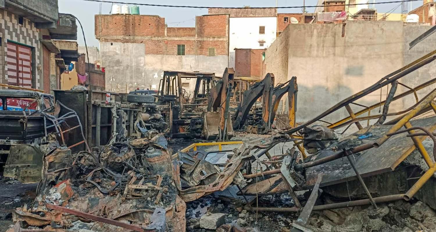 On Thursday, violence broke out over the demolition of an illegally built madrassa in the Banbhoolpura area, with locals hurling stones and petrol bombs at municipal workers and police, forcing many police personnel to seek refuge at a police station, which the mob then set on fire.