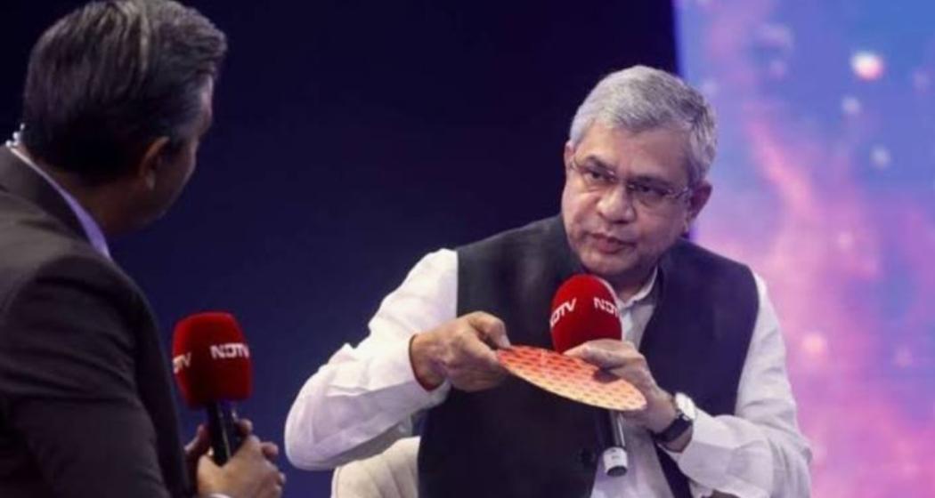 To illustrate the intricacy of chip fabrication, Vaishnaw held up a wafer. “This is a wafer. On this, building a complete city which will have its own plumbing, its own heating, its own electrical network, its own circuits… it’s a very, very complex thing,” he explained.