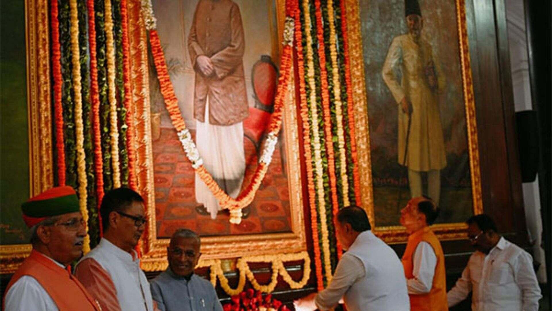 Tributes paid to Dr Shyama Prasad Mookerji in Samvidhan Sadanon Sunday.