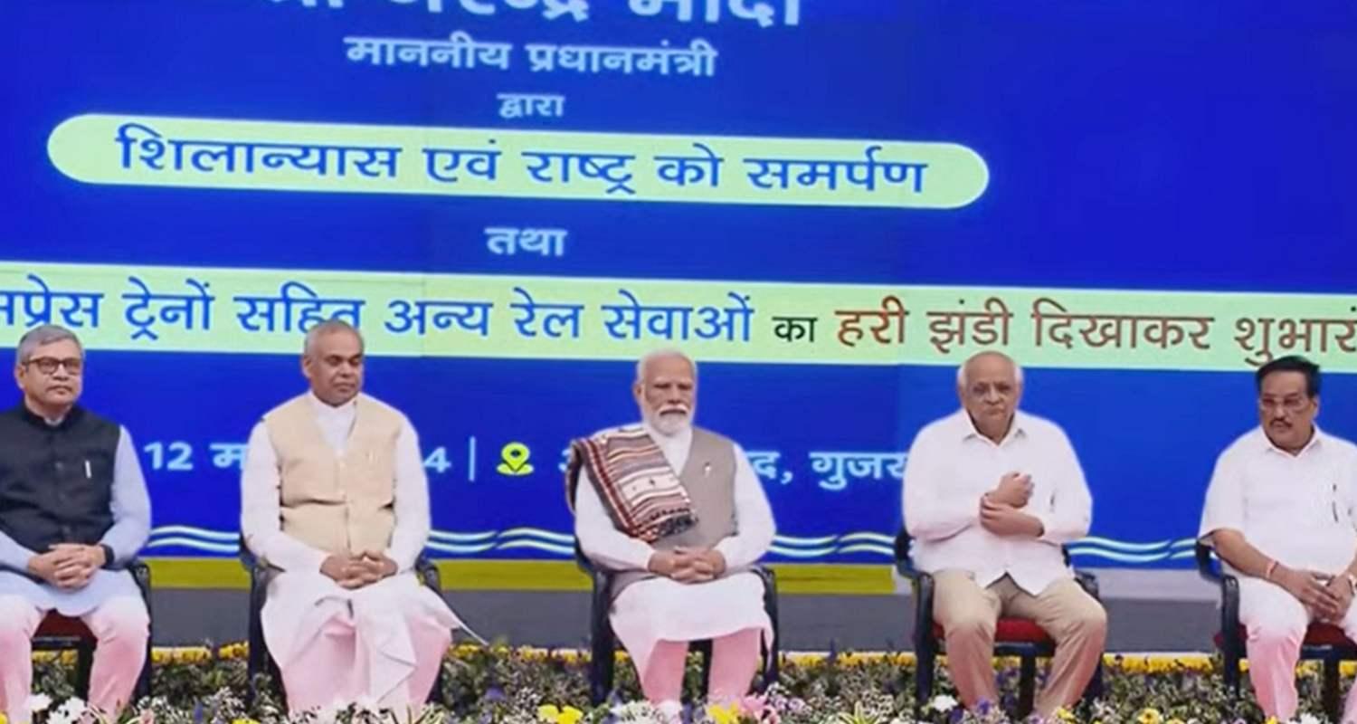 Prime Minister Narendra Modi inaugurated and laid the foundation stone of railway projects worth ₹85,000 crore. The launch event, which included the introduction of 10 new Vande Bharat trains, took place in the Sabarmati area of Ahmedabad, Gujarat, following his visit to the Dedicated Freight Corridor's (DFC) Operation Control Centre in the same location.