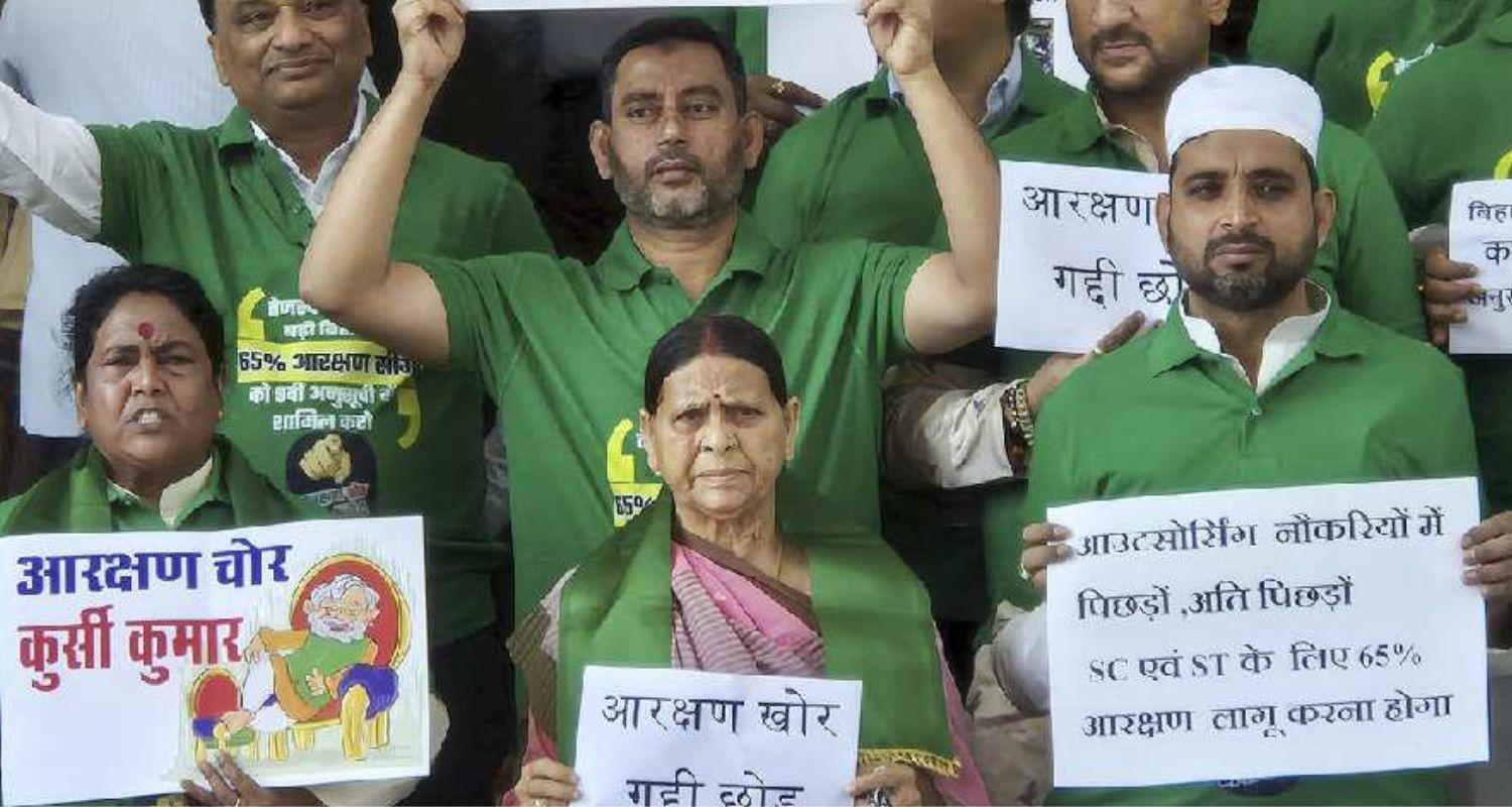 The protest was based on a caste-based survey conducted by the previous Grand Alliance government, which recommended increasing the reservation quota to reflect the state's demographic composition.