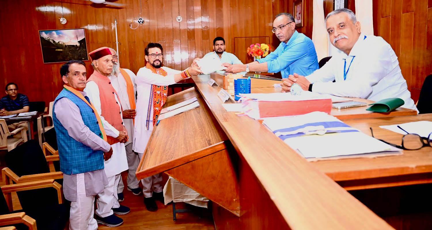 Thakur was accompanied by senior BJP leaders and his brother Arun Dhumal, the chairman of the Indian Premier League as he submitted is nomination papers. The senior BJP leader is seeking a fifth term in the Lok Sabha from the Hamirpur seat in Himachal Pradesh.