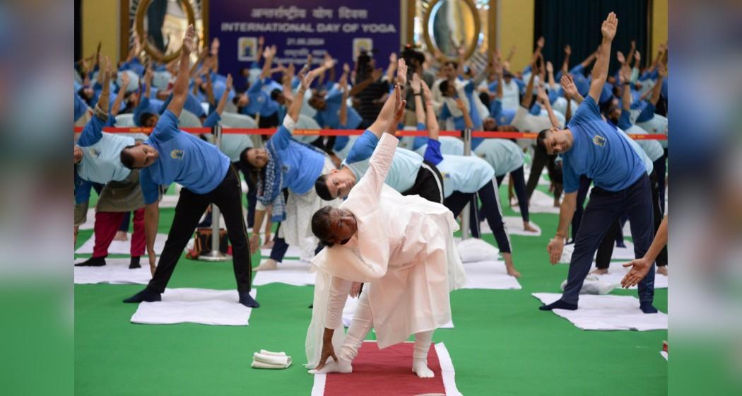President Murmu along with other officials of the President's Secretariat, also performed yoga at the Rashtrapati Bhavan here.