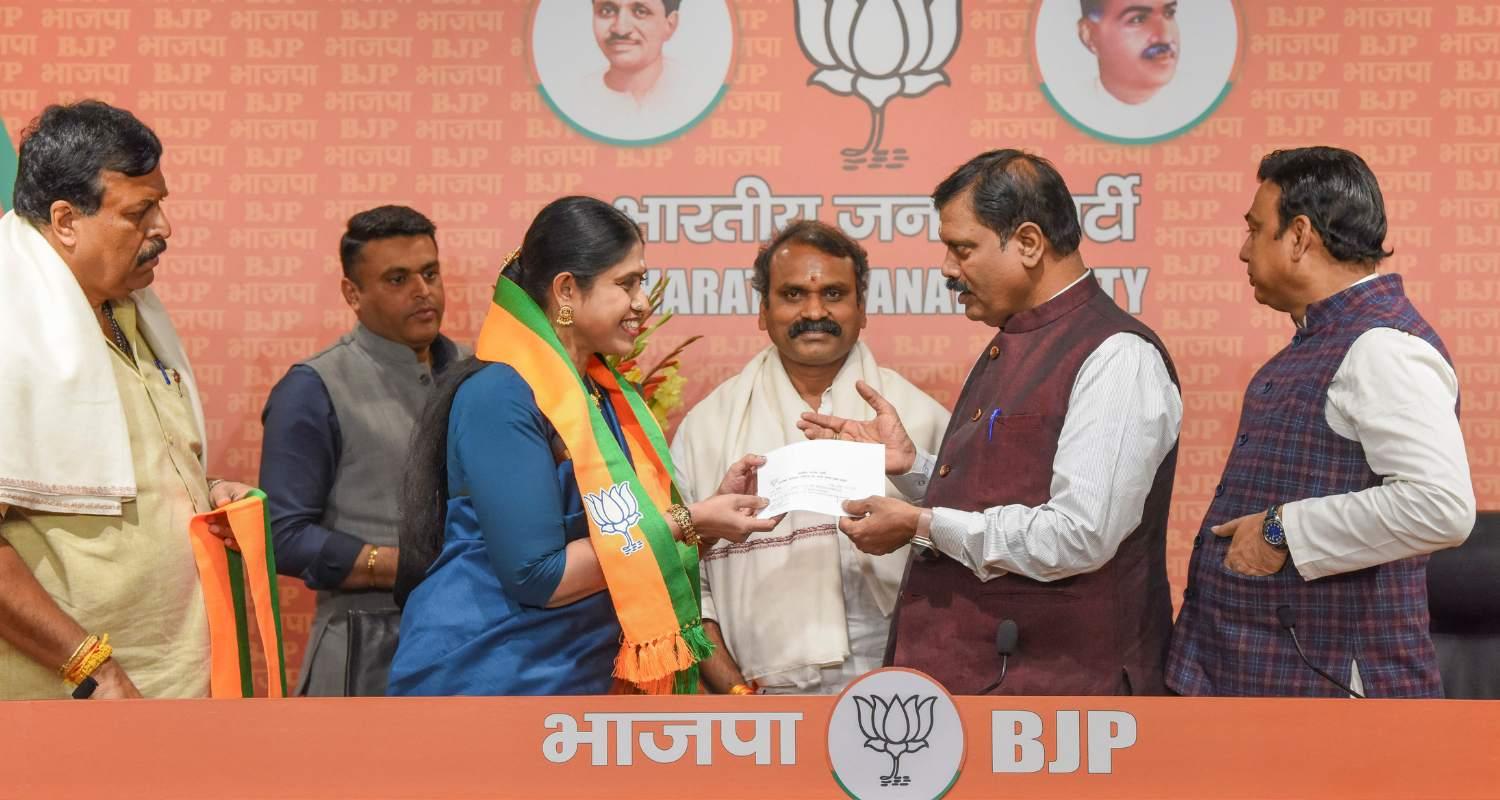 She joined the party in the national capital in the presence of Union Minister L Murugan and the party's national secretary Arvind Menon, who is the poll in charge for Tamil Nadu.
