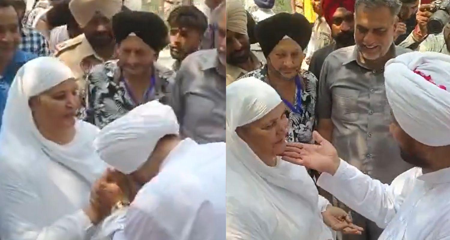 After a video clip circulated widely on social media, the chairperson of the state women's commission took suo-motu action and urged the Punjab director general of police to provide a status report by Tuesday. Before touching Kaur's chin, the Congress leader was seen holding her hands and bowing down before her.