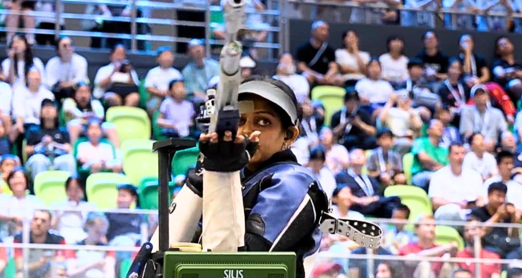 Meghana had qualified seventh for the final with 632.7, while Peng topped the charts with 637.4. The Indian began the eight-shooter contest tentatively, finishing the opening series of five shots at the bottom of the field. A composed second series of 52.3 lifted her to sixth, and from there she built momentum with a string of steady 10-plus scores.
