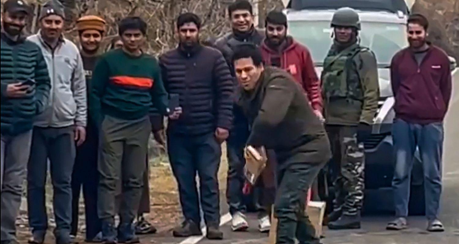 On his maiden trip to Jammu and Kashmir, Tendulkar got down from his SUV when he saw some young boys playing cricket on the road with a cardboard carton and an empty oil can as their stumps.
