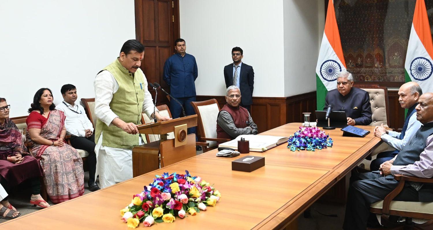 Rajya Sabha Chairman Jagdeep Dhankhar administered the oath of office to Aam Aadmi Party (AAP) MP Sanjay Singh for his re-election to the Upper House from Delhi, marking his second term in office.