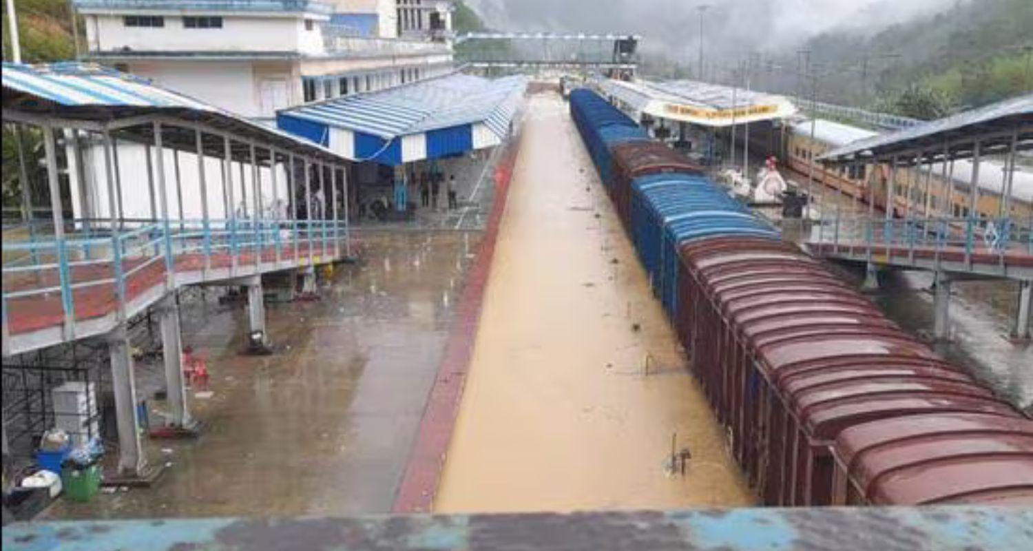 The railway station in Silchar's Tarapur locality, situated close to the river, has been submerged, halting railway operations.