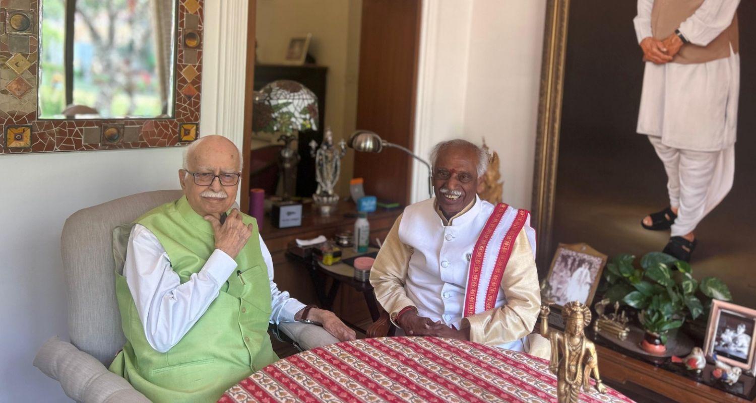 Haryana Governor Bandaru Dattatreya visited ex-deputy prime minister L K Advani and congratulated him on being awarded the highest civilian award, Bharat Ratna.
