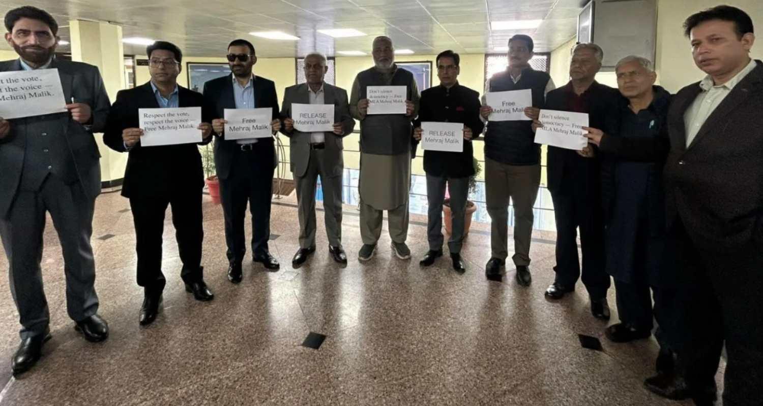 Ahead of the autumn session of the Jammu and Kashmir Legislative Assembly, several MLAs from the ruling NC and Congress alliance held a peaceful protest on Thursday, demanding the release of detained Legislator Mehraj Malik. Several MLAs of the National Conference and Congress were seen holding the placards seeking the release of the Doda MLA.