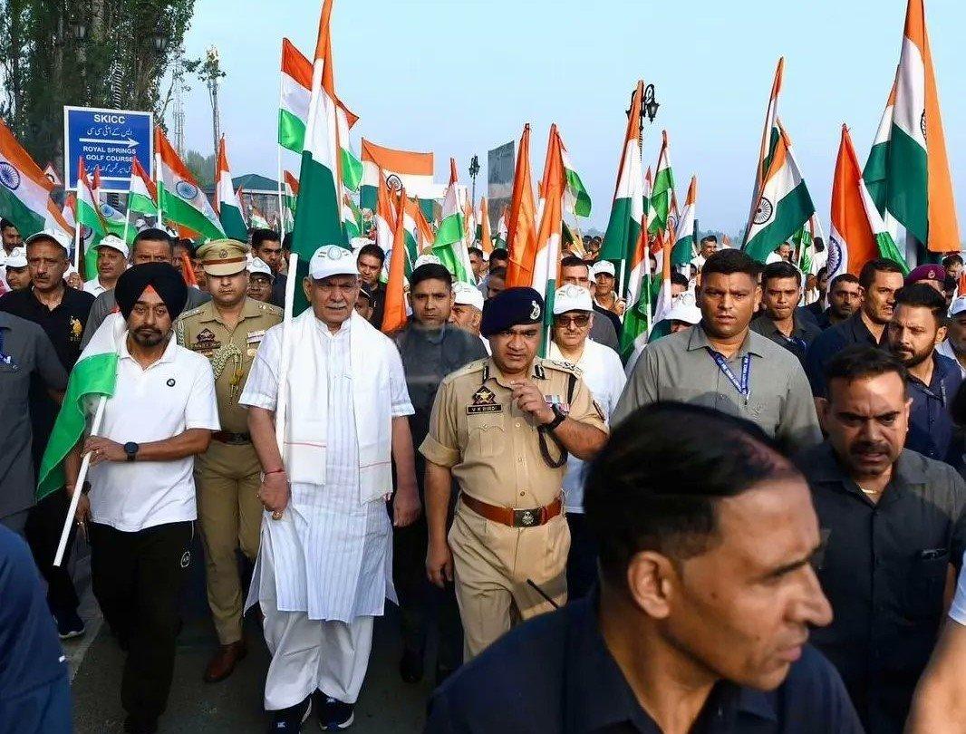 Lieutenant Governor of Jammu and Kashmir, Manoj Sinha, led a large 'Tiranga' rally in Srinagar on Monday, with thousands participating in the event.