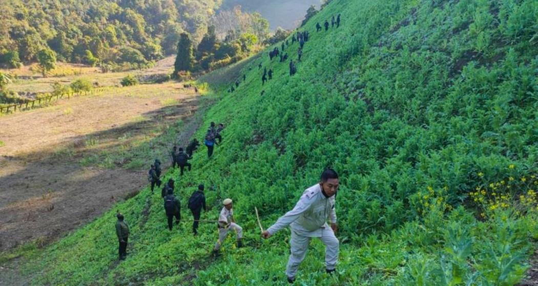 In a post on X, Singh said, “In a significant breakthrough in our war on drugs, Senapati Police, Forest department, and district administration have destroyed 4.8 hectares of illicit poppy cultivation at Kangjang Hills, Senapati.”