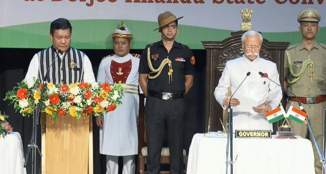 Pema Khandu was sworn in as Chief Minister of Arunachal Pradesh for the third consecutive term. The swearing-in ceremony, which took place amid tight security arrangements, witnessed the presence of prominent leaders including Union Home Minister Amit Shah, BJP President J.P. Nadda, Union Minister Kiren Rijiju, and Assam Chief Minister Himanta Biswa Sarma.