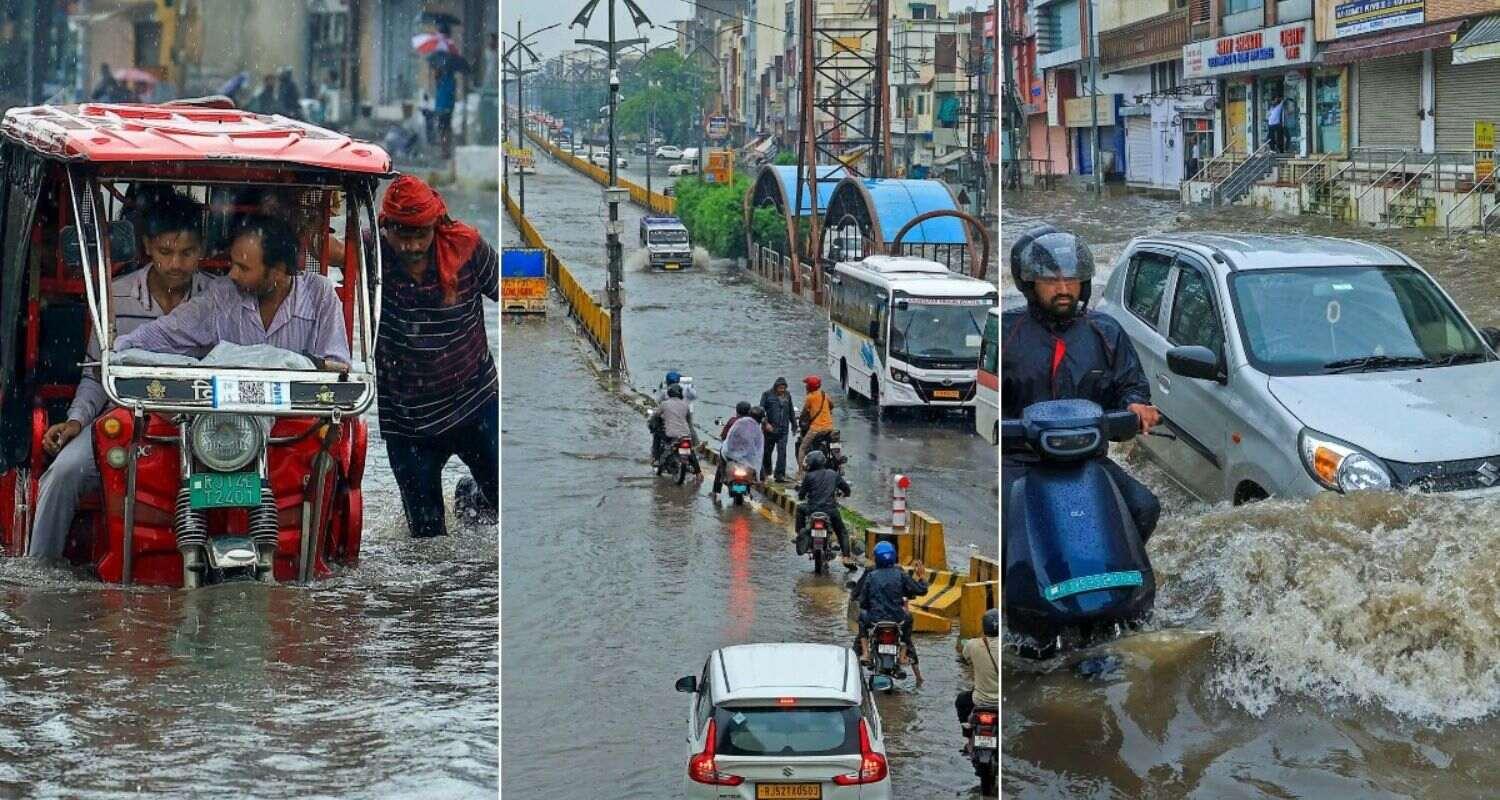 In Ajmer, continuous overnight rainfall created a flood-like situation in the low-lying areas, submerging many streets and leaving residents trapped in their homes.